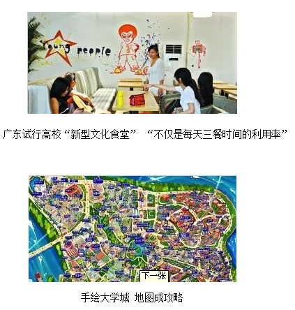[摘要] 新學(xué)期開始,廣東高校食堂試行“轉(zhuǎn)型升級(jí)”不再是千篇一律的設(shè)計(jì),也不僅是每天三餐時(shí)間的利用率,墻壁可以涂鴉,過道可以“走秀”,大量的空間可以展示設(shè)計(jì)品,進(jìn)行“俱樂部式交流”。