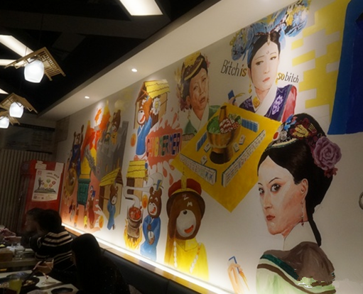 然而追求美食本身的同時,已不能滿足立志做一個不一樣火鍋店的愿望。店里最醒目的就是一副巨大的18平米手繪墻畫。這個墻畫里面可是藏著貨真價實的“紅包”——每一位進店的小伙伴都可以抽取紅包拿到問題,去壁畫中尋找答案,答對就有對應(yīng)的現(xiàn)金折扣。還有唱片墻、紅酒墻、照片墻……幾乎每一個角落里面都是暗藏玄機,店內(nèi)百種創(chuàng)意玩法!