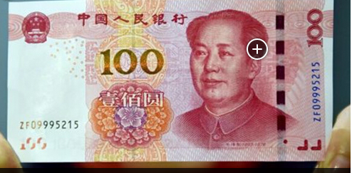 新百元大鈔與舊版百元人民幣相比,最明顯的變化是人民幣票面中部增加了光變阿拉伯數字100。當垂直觀察人民幣票面時,數字以金色為主。