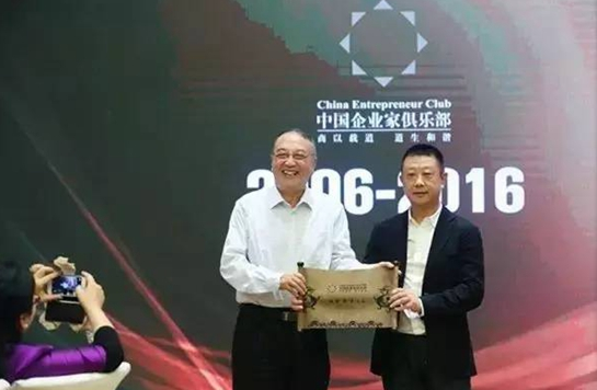 中國(guó)企業(yè)家俱樂(lè)部主席柳傳志為海底撈張勇授牌